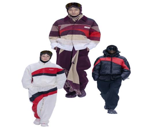 有趣的是,品牌还将灵感目光溯源至中国阿勒泰的滑雪运动起源,古老岩画描绘的滑雪图腾、阿尔泰山脉的雄浑线条、层层交织的冰川纹理与现代数字印花相结合,打造出跨越历史与未来的时尚风格。
